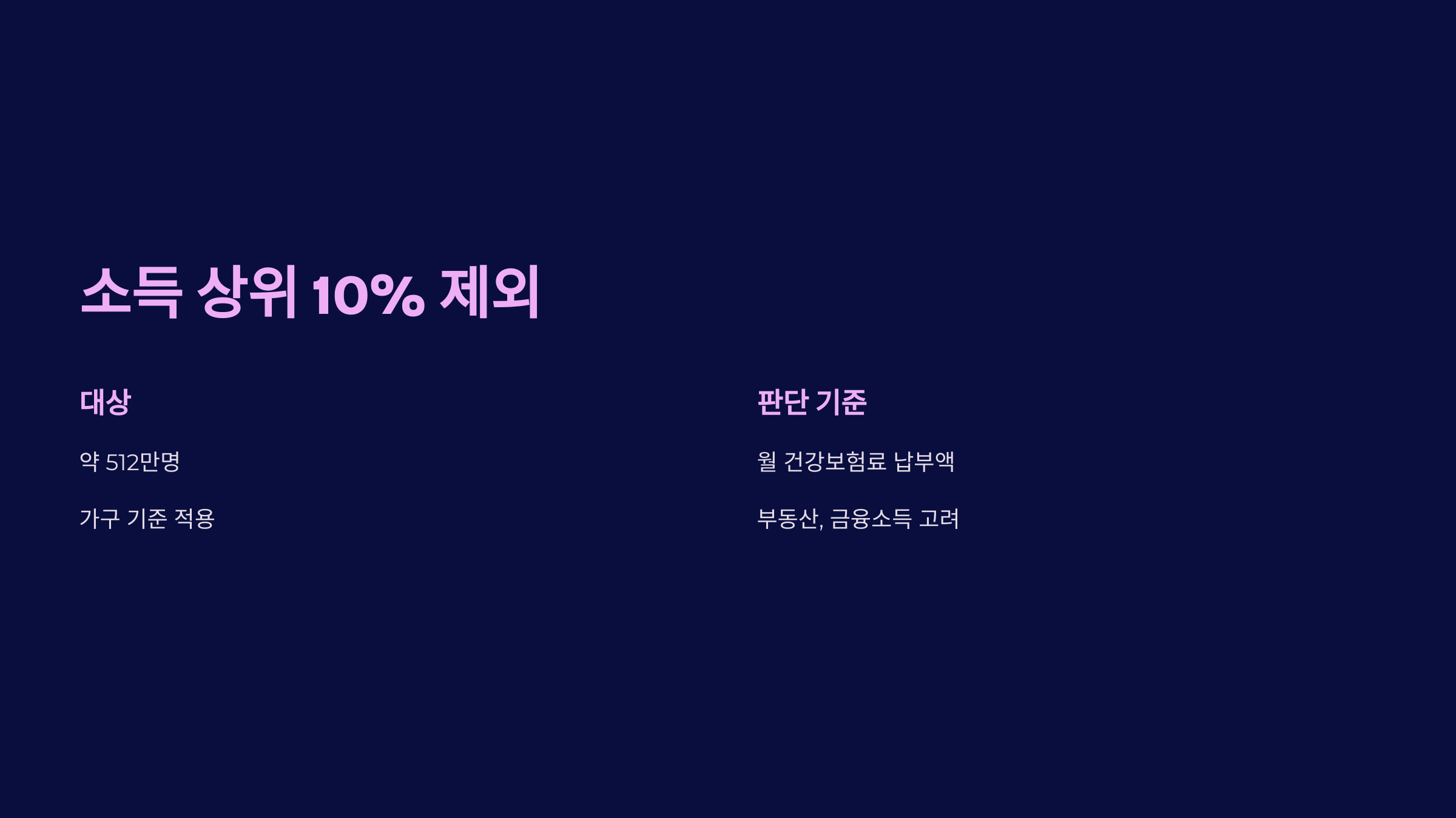- 소득 상위 10%(512만 명)는 2차 지원 대상에서 제외됩니다.