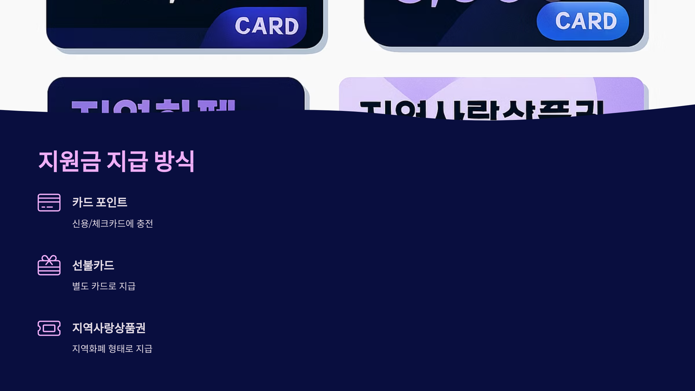 지원금은 현금으로 바로 주기보다는 지역 경제를 살리기 위해 지역사랑상품권, 카드 포인트, 선불카드 같은 형태로 지급될 가능성이 높아요.