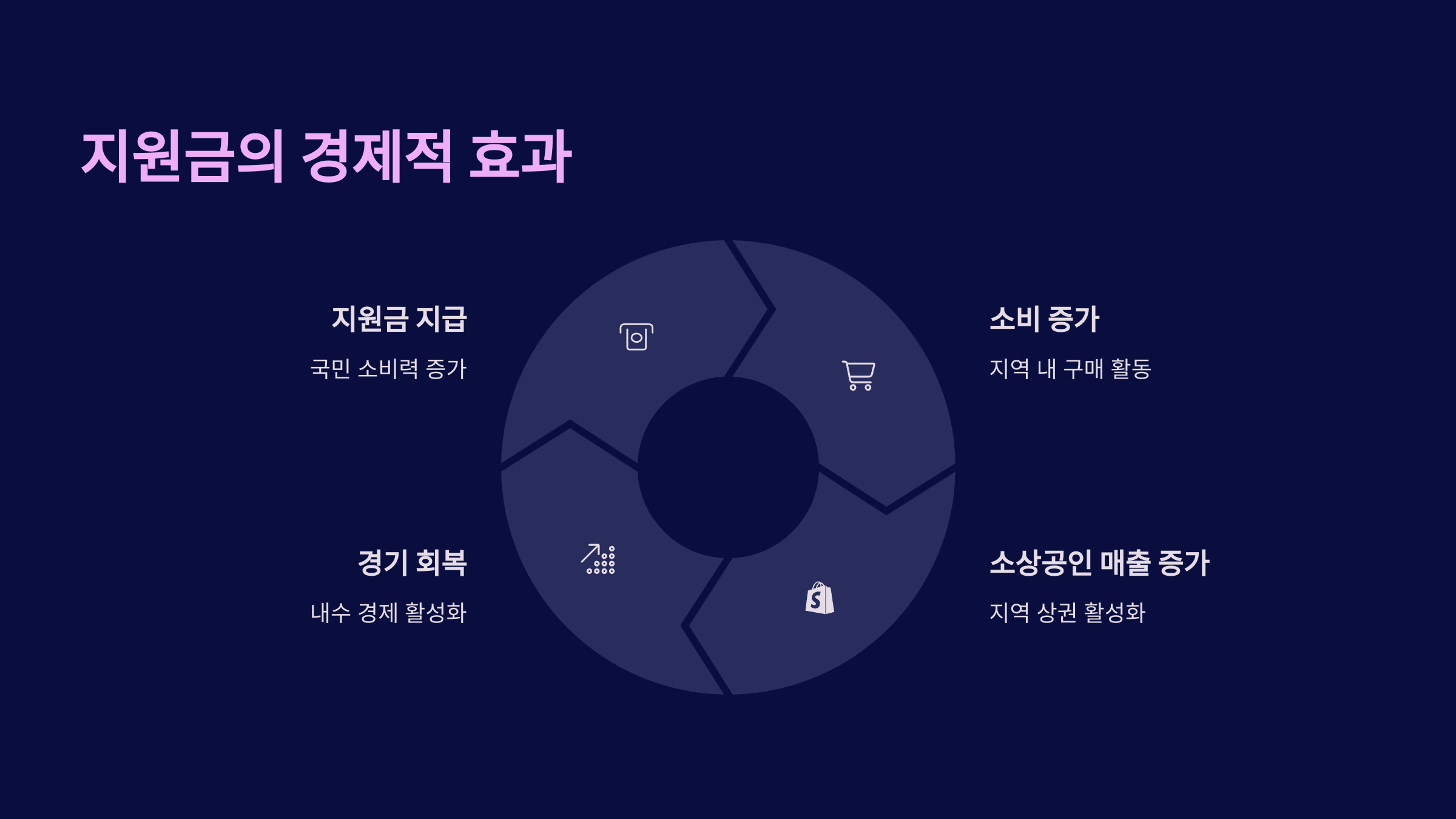 지금처럼 물가도 높고 경제가 어려운 시기에 우리 가계에 보탬이 되고, 동시에 침체된 지역 경제에 활력을 불어넣기 위해서예요. 국민들이 받은 지원금으로 동네 가게에서 물건을 사거나 밥을 먹으면, 그 돈이 다시 지역 경제를 돌게 만드는 거죠!