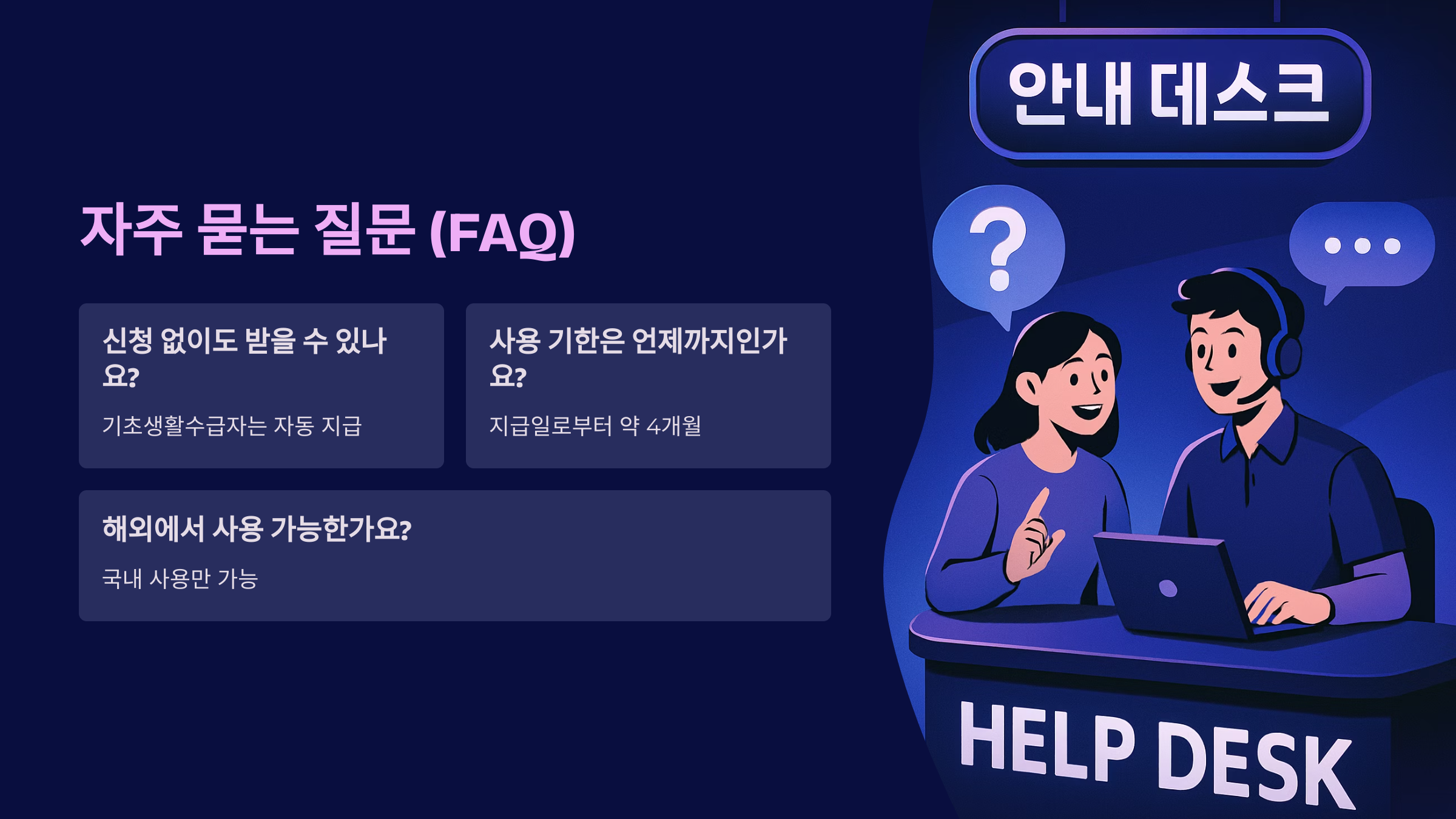 - 온라인: 정부24, 복지로 같은 공식 웹사이트나 앱, 또는 지자체 웹사이트나 카드사 앱을 통해 신청할 수 있을 거예요. 집에서 편하게 신청할 수 있겠죠?