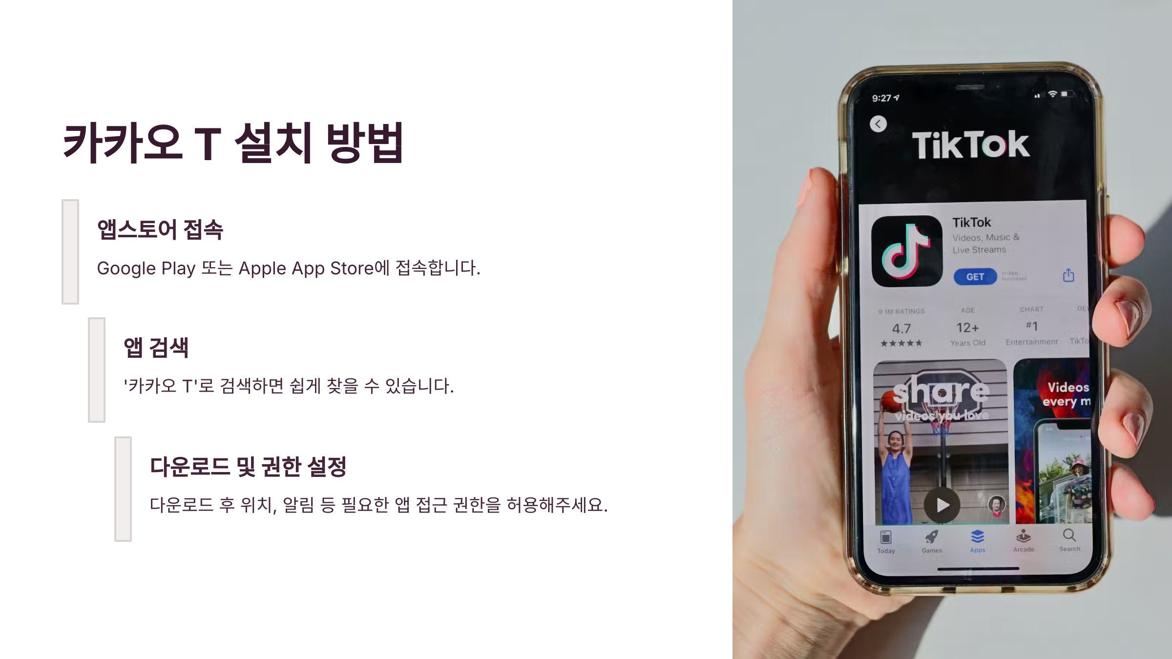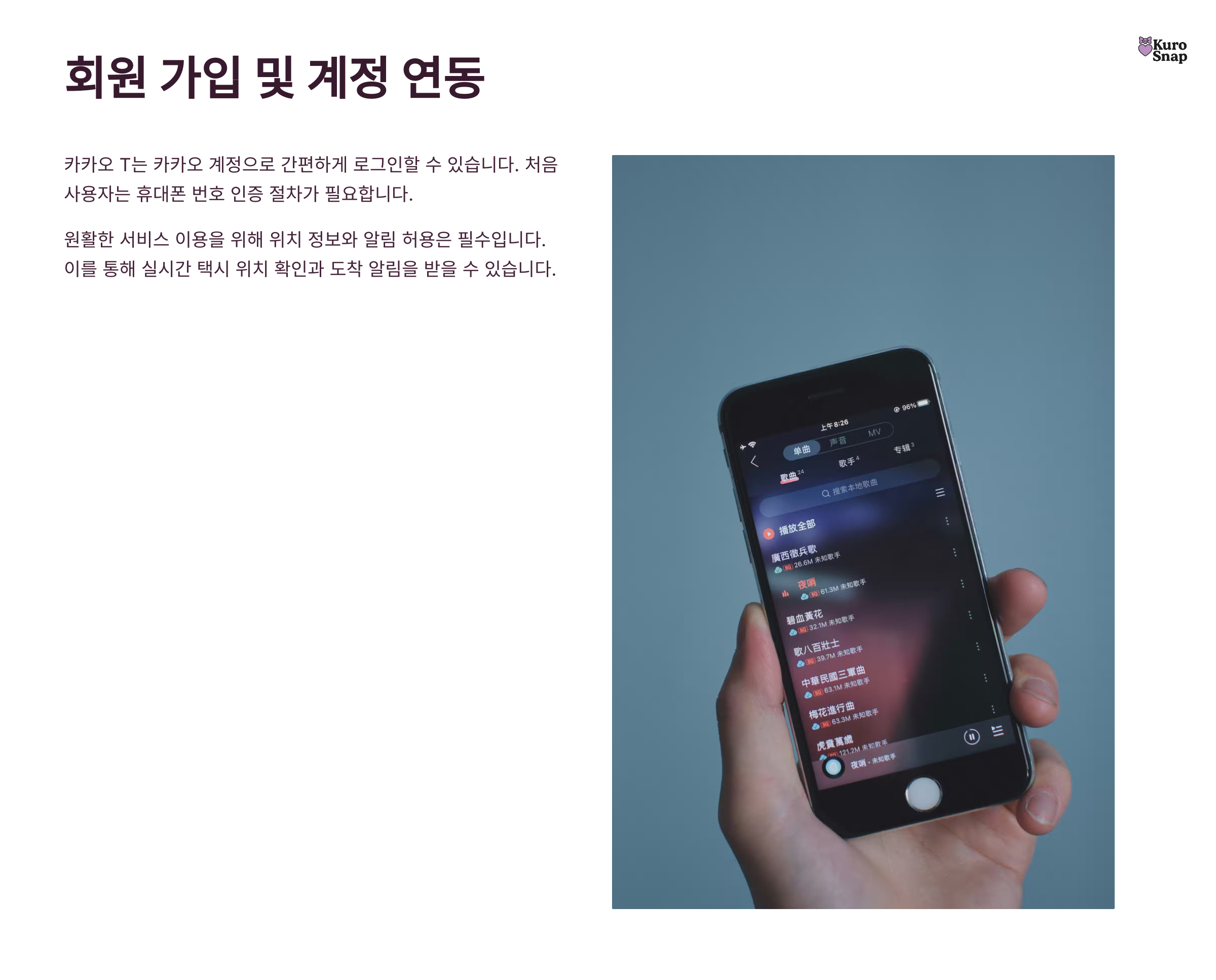 스마트폰 사용자라면 구글 플레이스토어나 애플 앱스토어에 들어가서 ‘카카오 T’를 검색하세요. 다운로드하고 나면, 카카오 계정으로 로그인하라는 화면이 떠요. 기존에 카카오톡 쓰던 분이라면 거의 자동으로 연동됩니다.