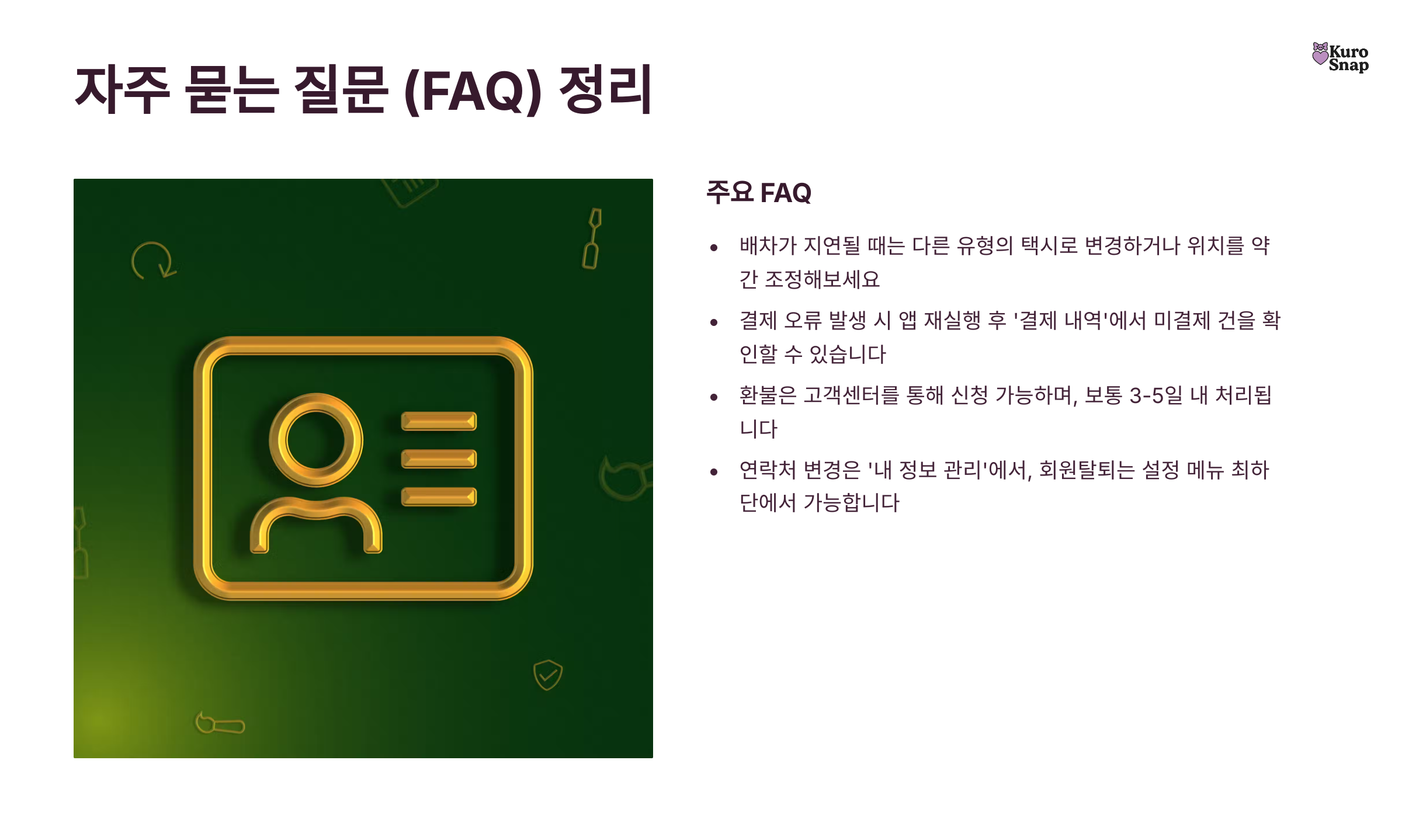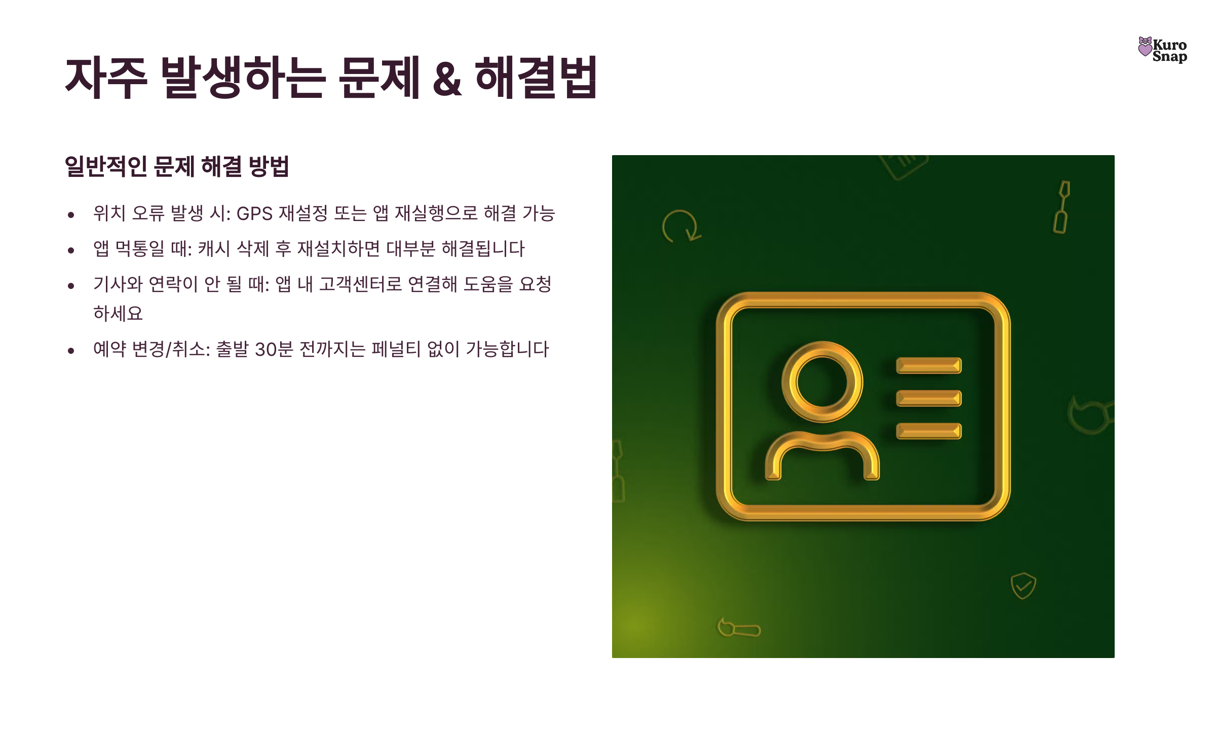 | 현장 결제 | 카드/현금 모두 가능하나, 기사님에 따라 다름 |