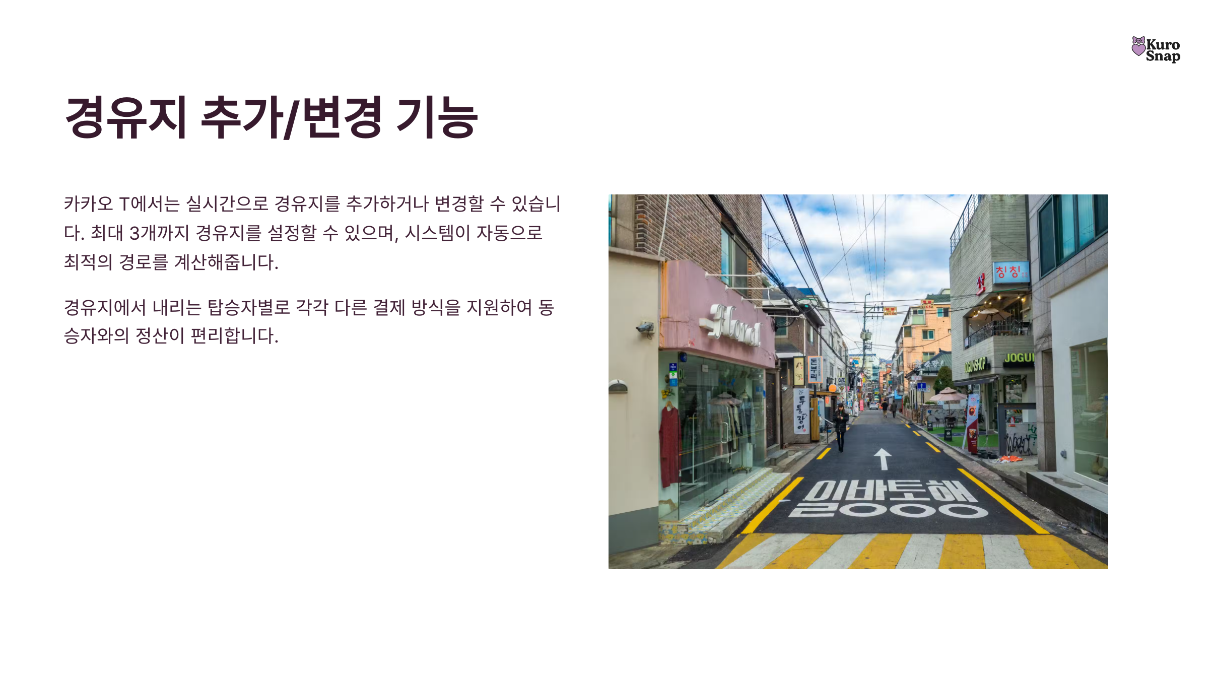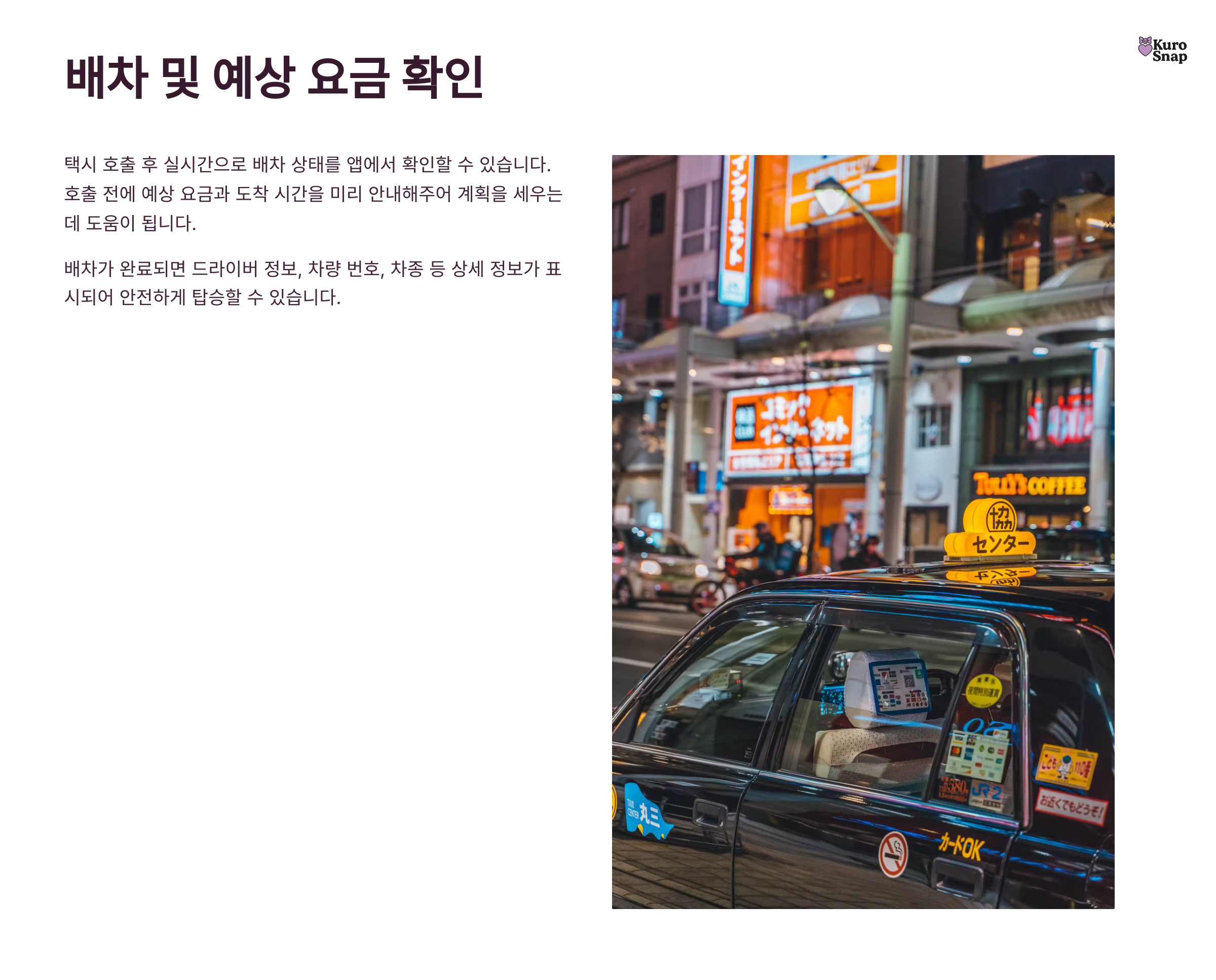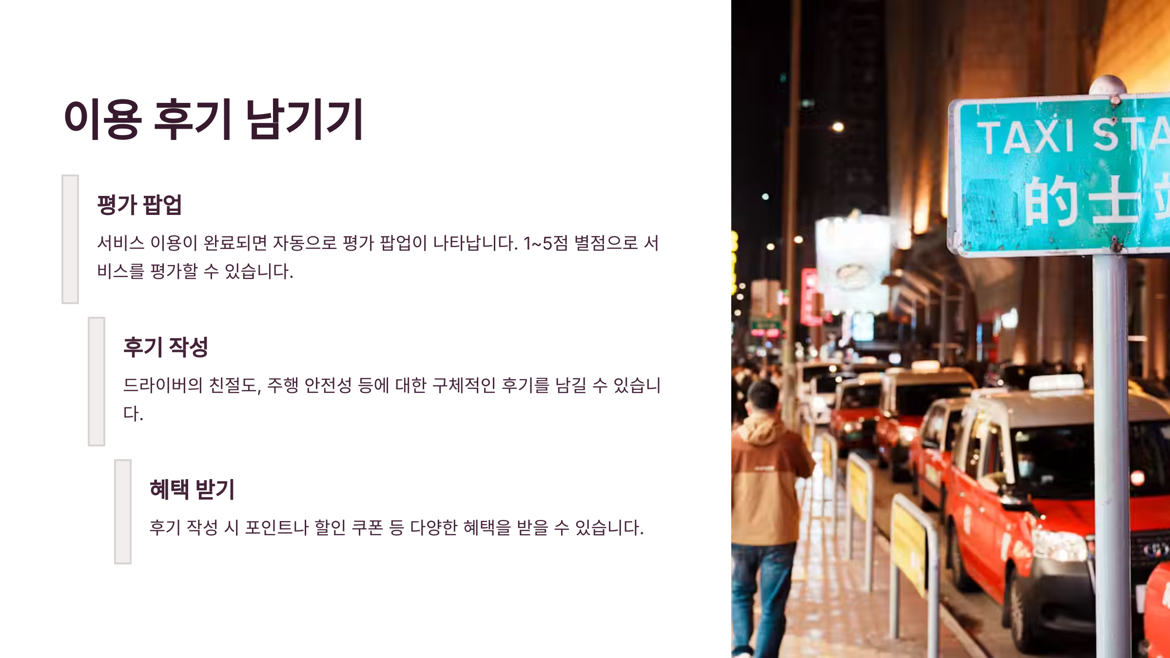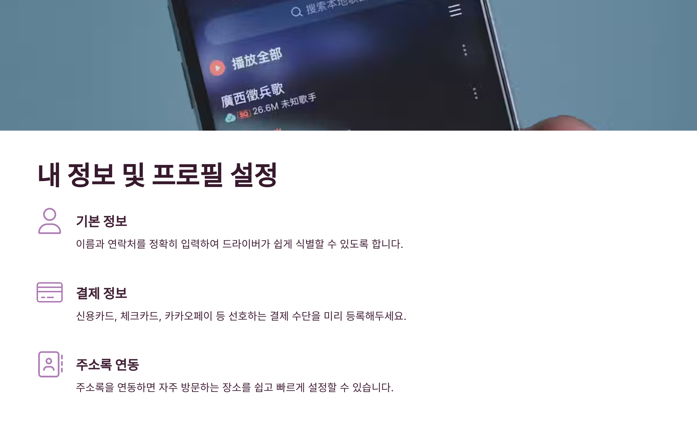 - 스마트호출: 추가비용 내고 빠르게 배차됨