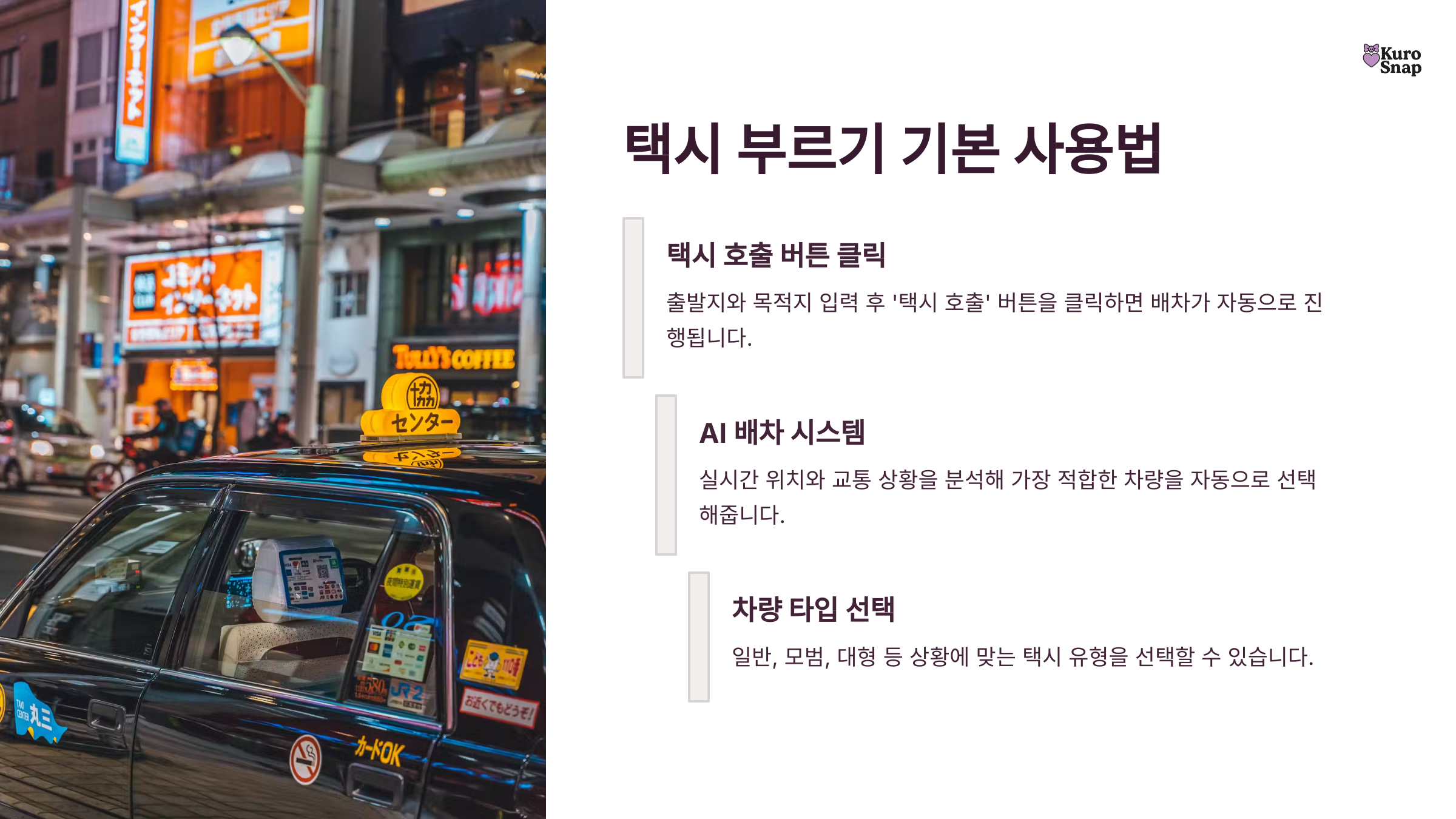생각보다 택시 종류가 많아요. 그냥 ‘일반 택시’만 있는 줄 알았는데, 아니더라고요! 카카오택시 앱 사용법